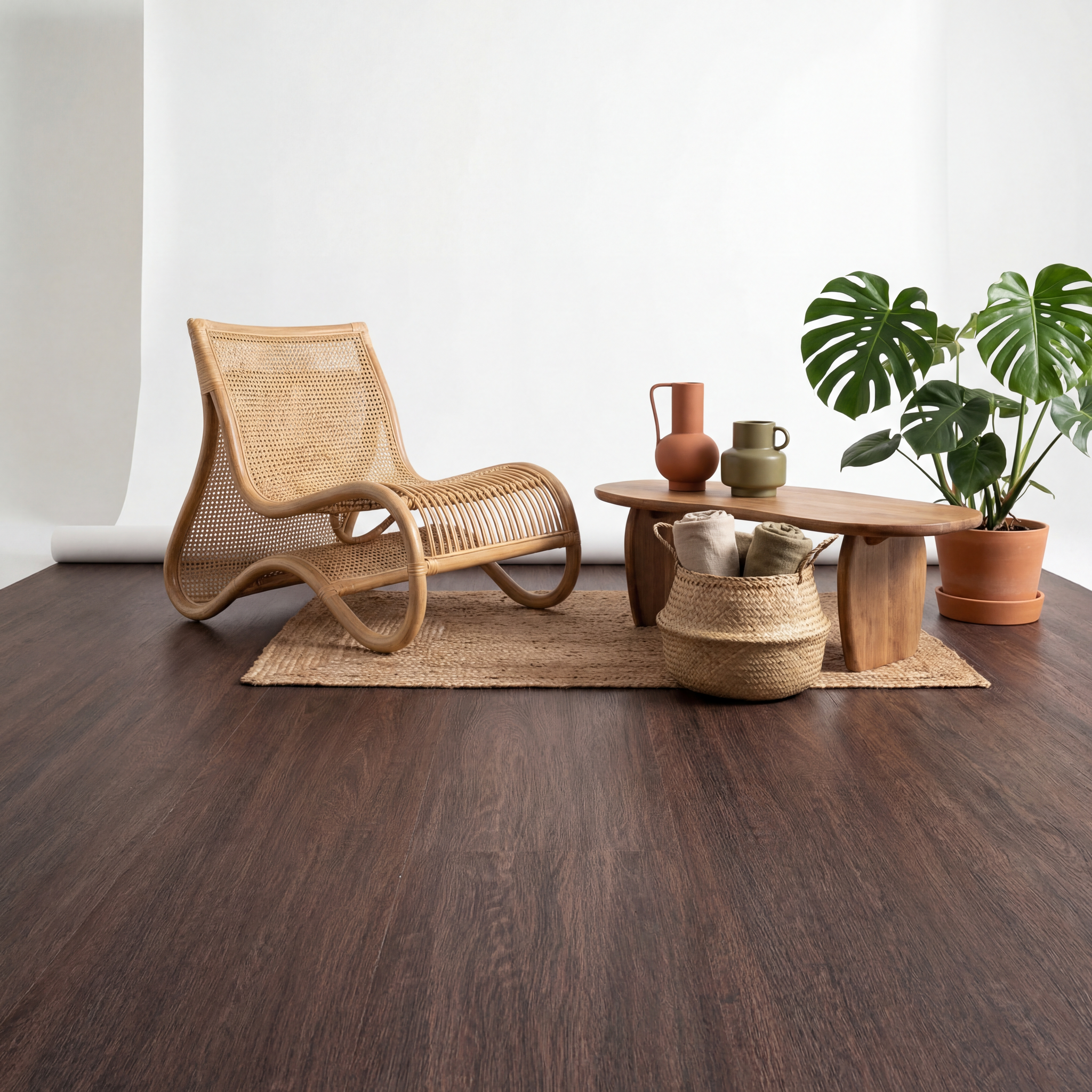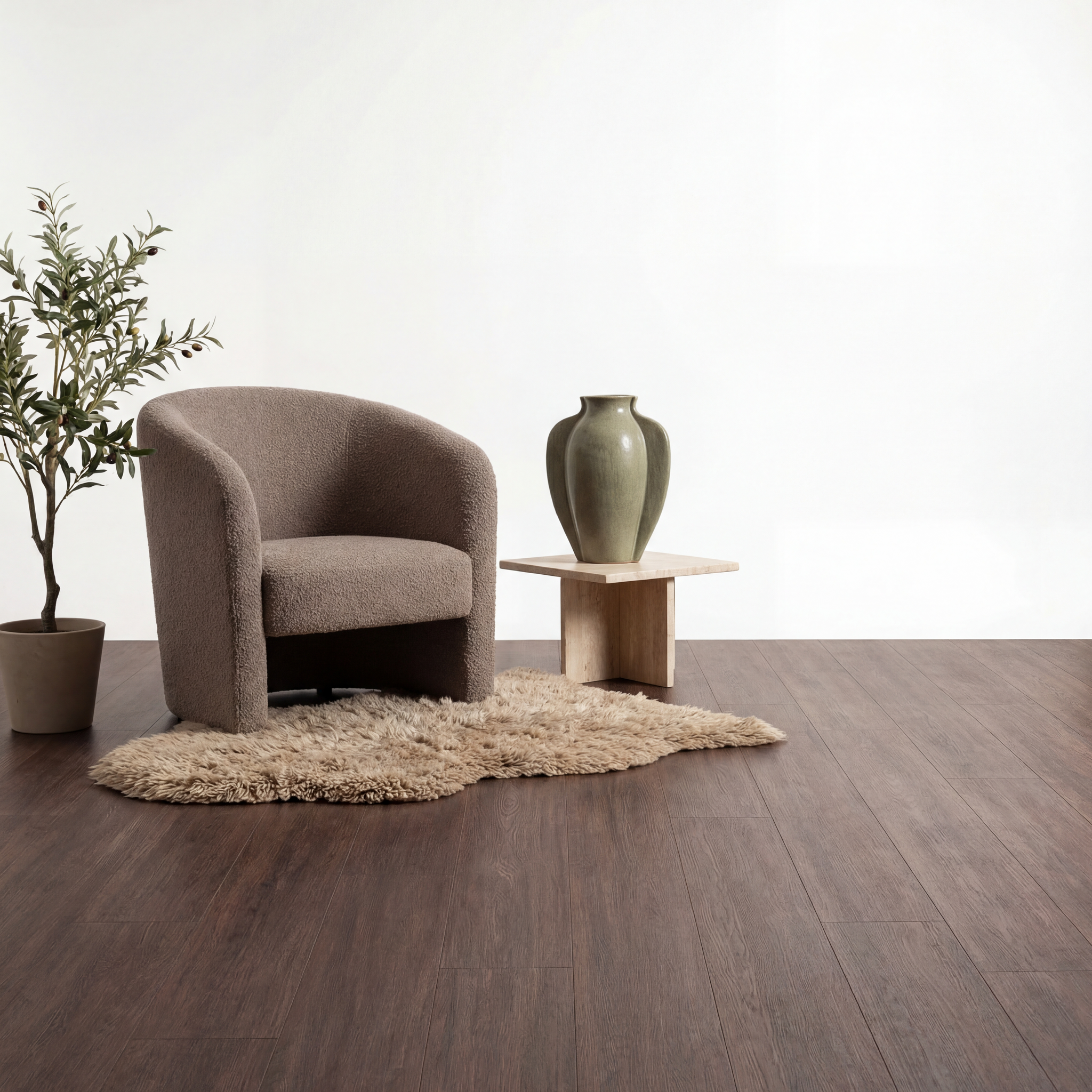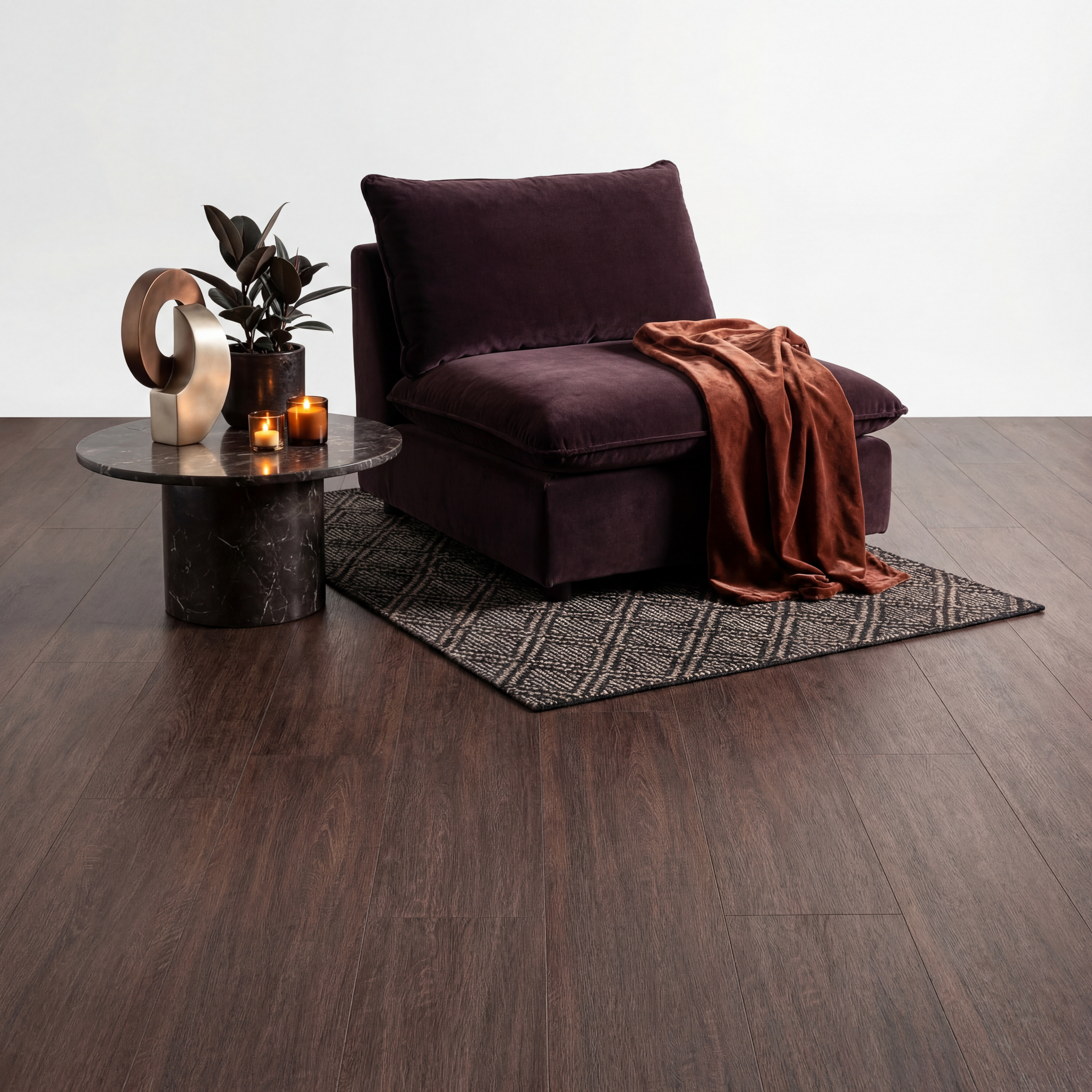 De Kaleo Ultra Matte Laminaatvloer combineert modern design met ultiem gebruiksgemak. Met zijn rijke donkerbruine kleur, voegt deze vloer direct een warme, natuurlijke uitstraling toe aan elke ruimte. De ultra matte afwerking versterkt het authentieke gevoel van hout, zonder de traditionele glans van laminaat, waardoor een meer verfijnde, moderne sfeer ontstaat.